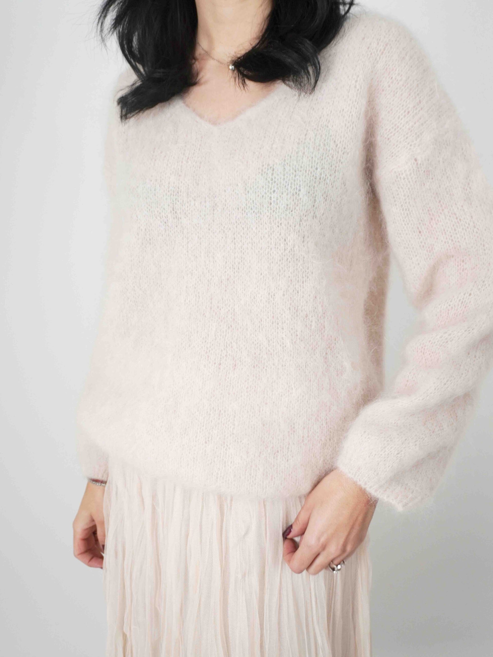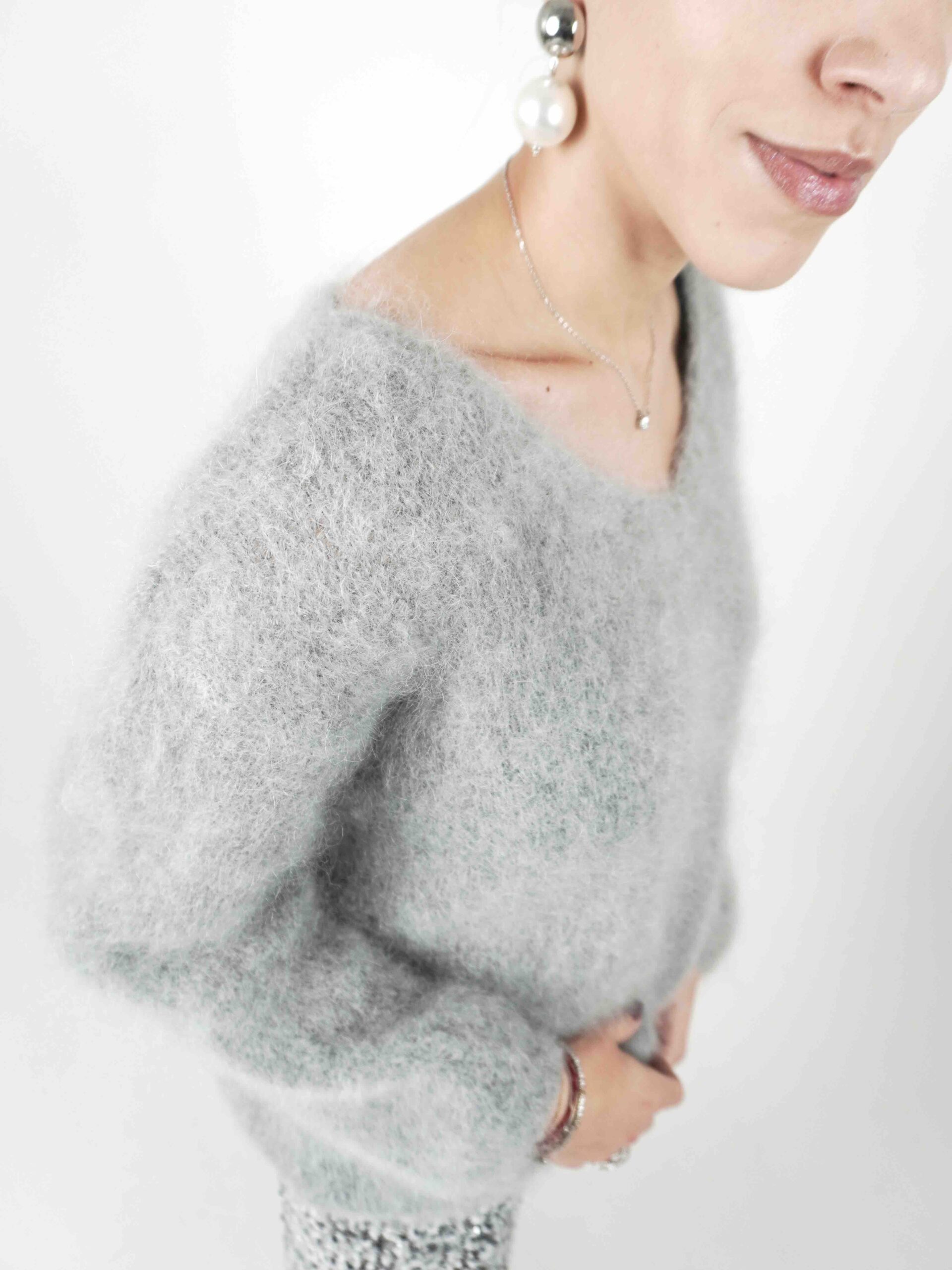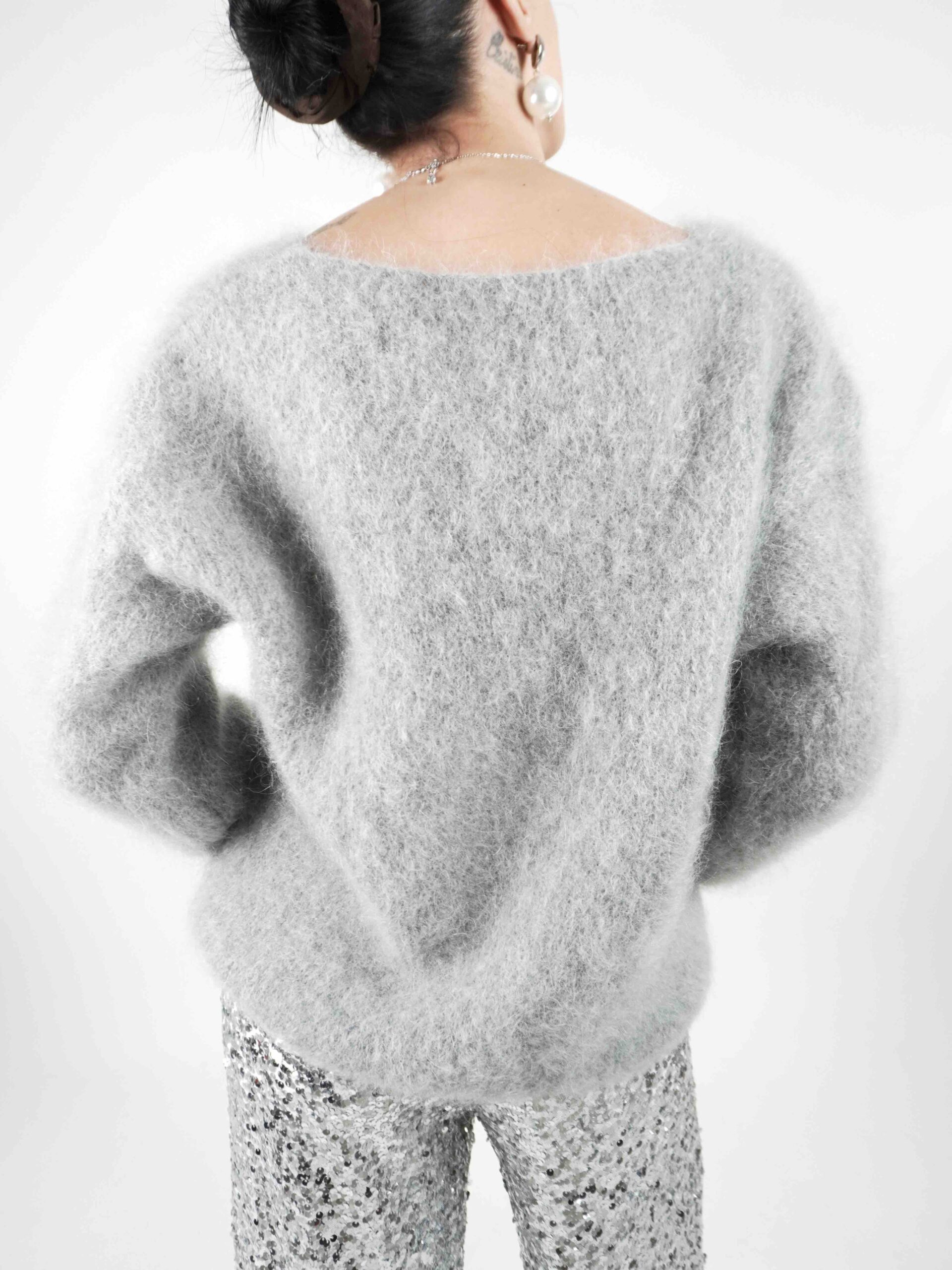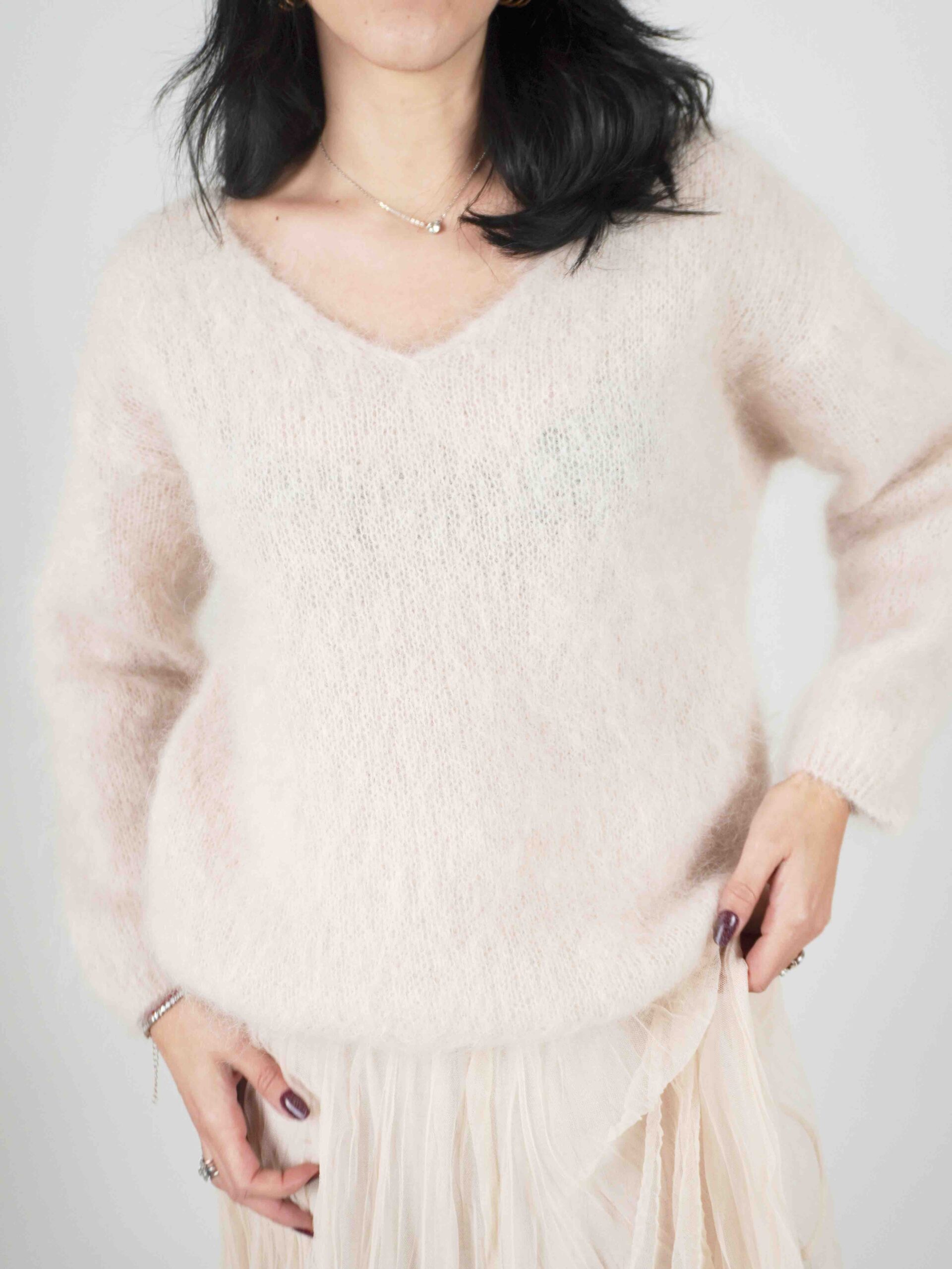 Maglione in misto mohair con scollo a V. È taglia unica e veste fino ad una 48.