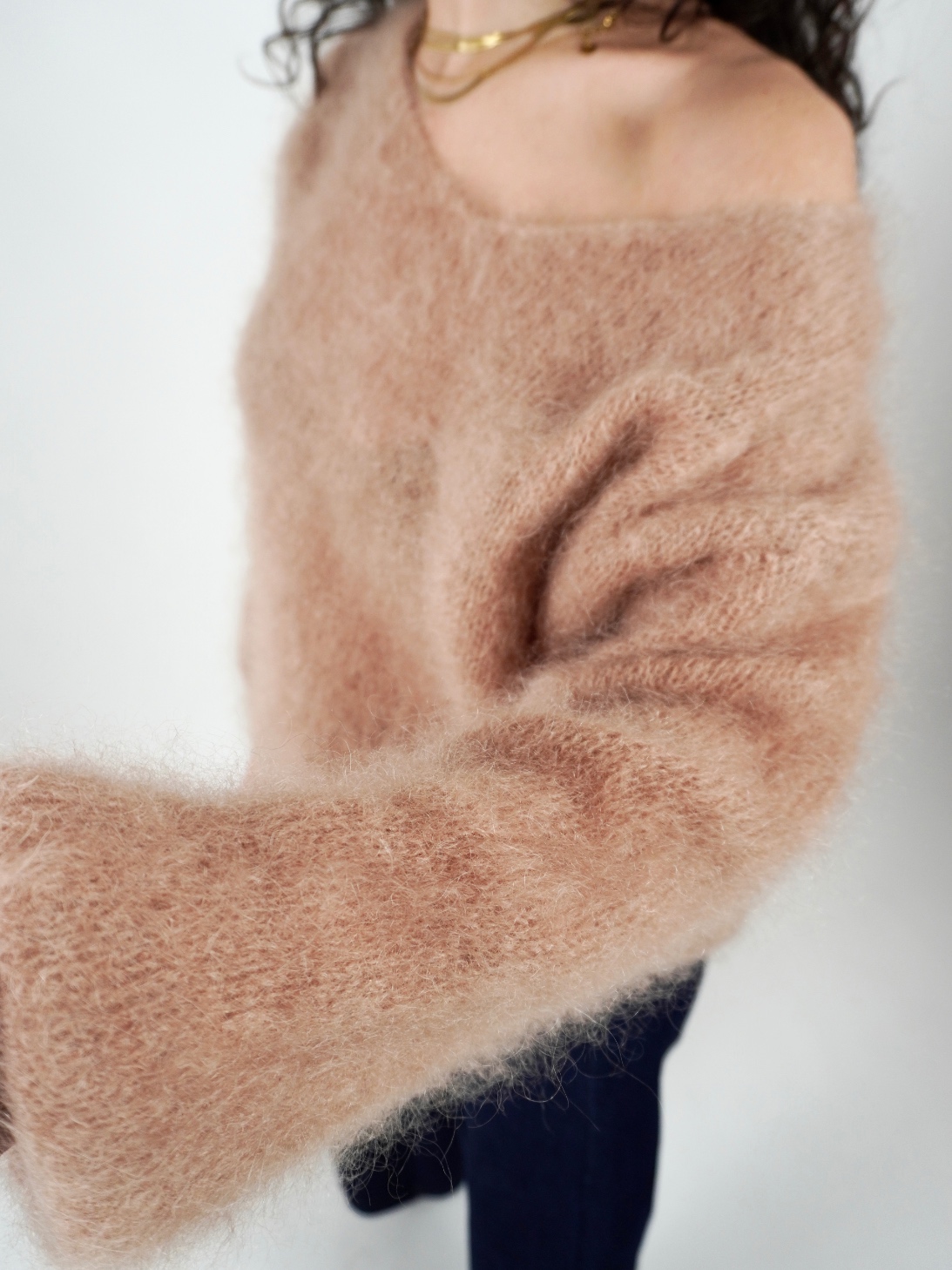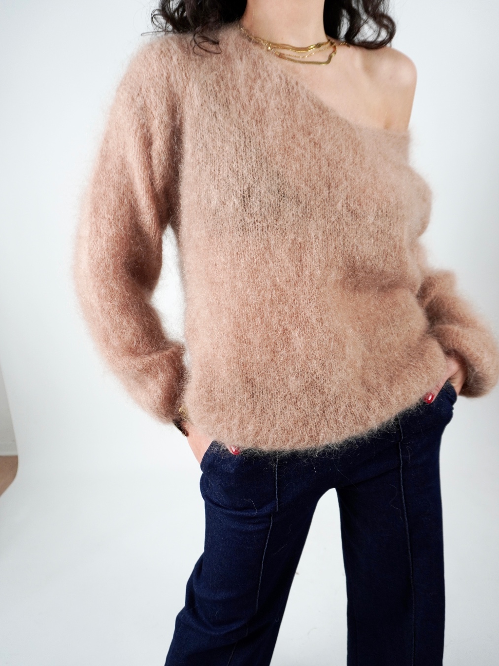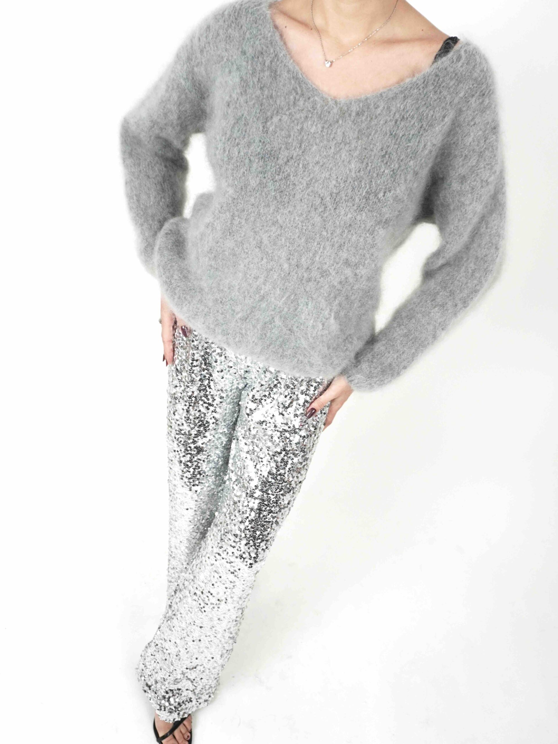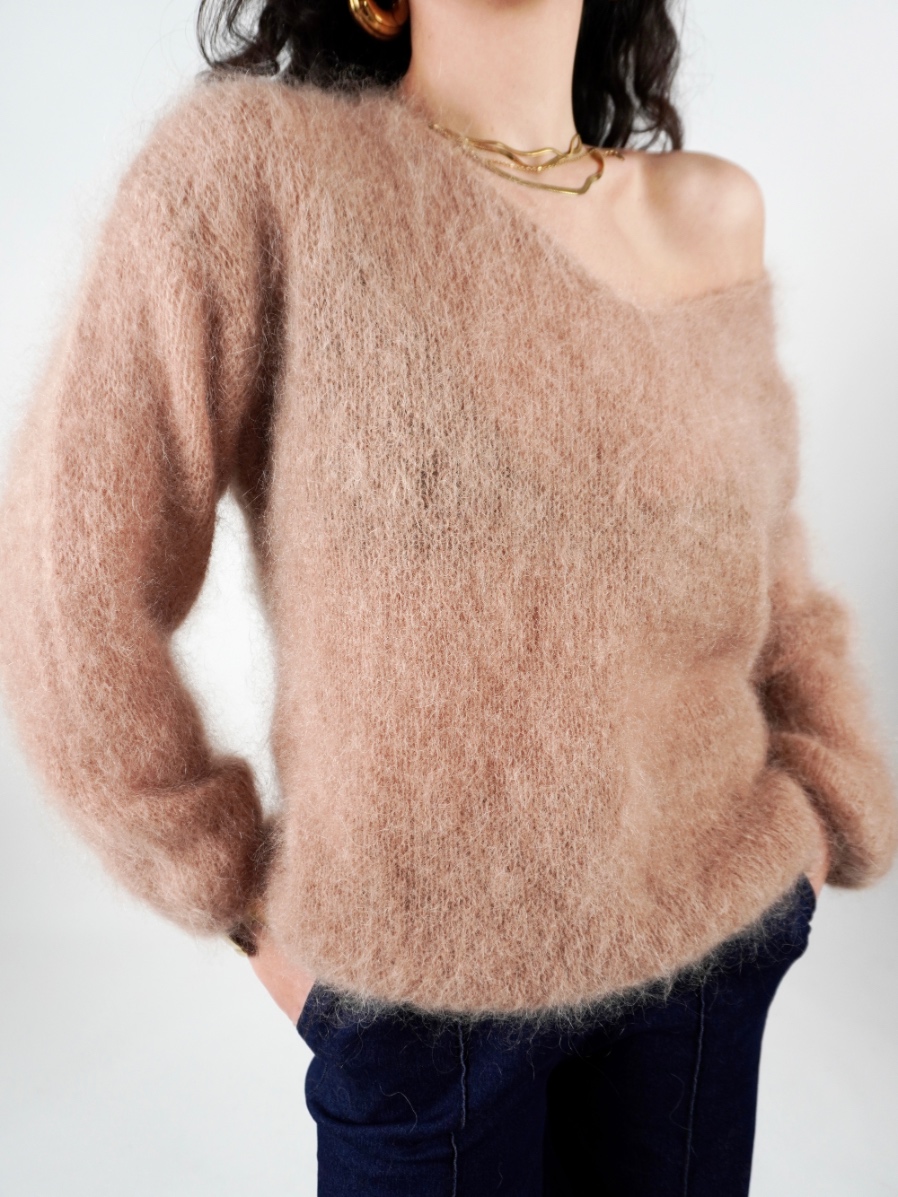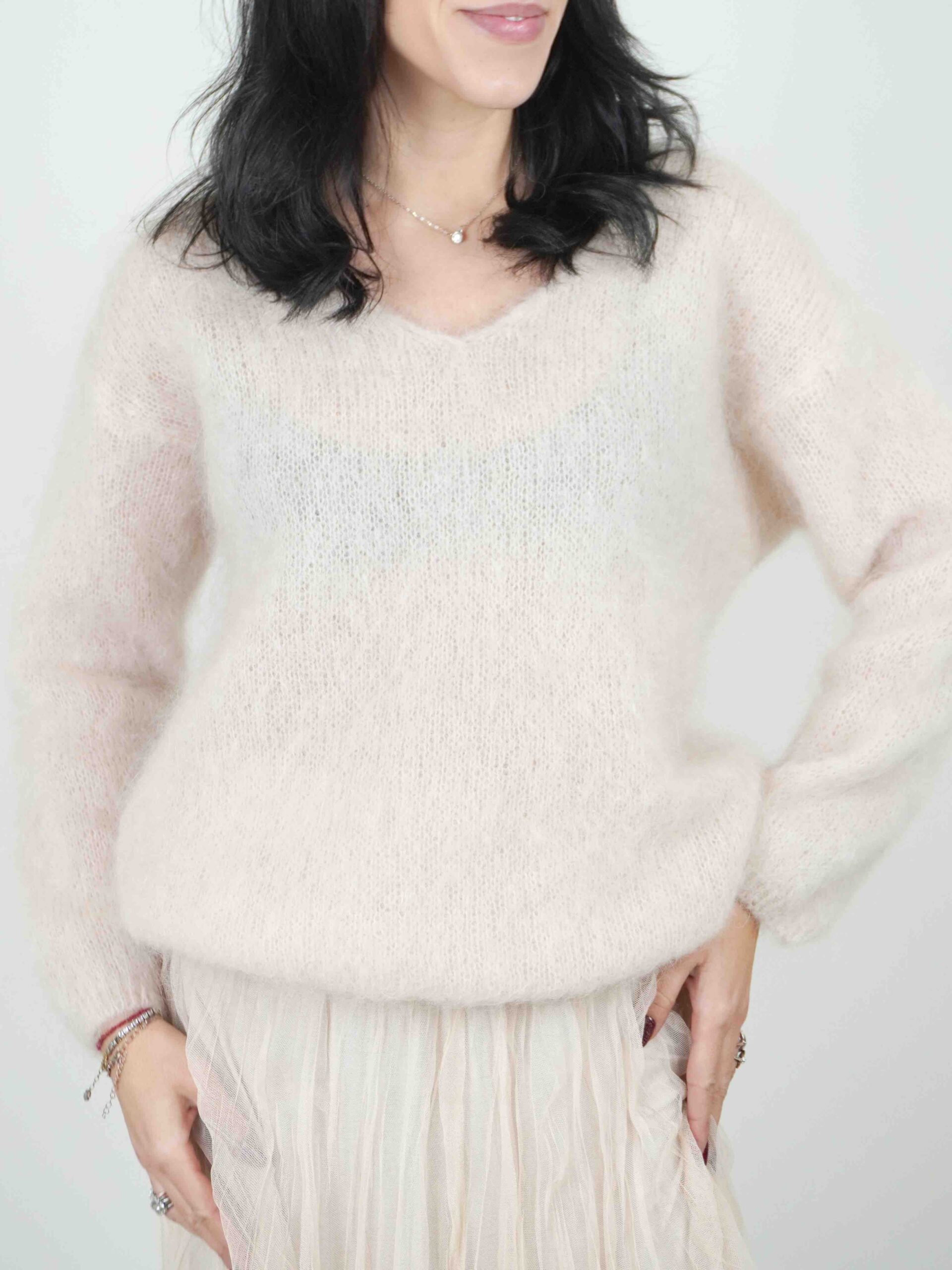 Maglione in misto mohair con scollo a V. È taglia unica e veste fino ad una 48.